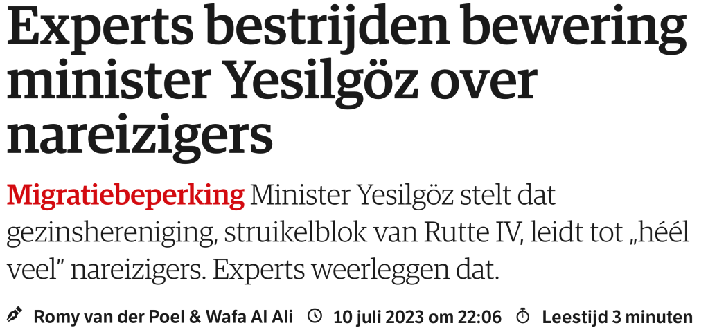 Wat een dag was het vandaag toch weer. Als volger van de nationale politiek viel er afgelopen weekend veel te beleven. De plotselinge val van het kabinet Rutte 4. Na een aankondiging van de crisis in het begin van de week (Sophie Hermans “Schiet eens effe op Mark”) de drieste actie van Mark zelf tijdens een overleg op woensdag avond leek donderdag de crisis voorbij. Om vervolgens op vrijdagavond toch volledig uit elkaar te spatten. Het kabinet is gevallen. En waarom dan wel? En hoezo over het asielvraagstuk en nog wel specifiek over de gezinshereniging van kinderen uit oorlogsgebieden? Er waren toch belangrijkere onderwerpen waar een kabinetsval beter te verantwoorden valt. (Ik denk aan Groningen, Stikstof, klimaattransitie, landbouwbeleid) Dat bleef lang in nevelen gehuld. In een debat bij OP1 zaterdagavond maakte me echter veel duidelijk. De VVD Minister Dilan Yeşilgöz vond het onderdeel gezinshereniging, “nareis op nareis” het belangrijkste. En dat de Christenunie daarop niet te bewegen viel was voldoende reden voor de uiteindelijk crisis. Onbegrijpelijk en naar de betreffende kinderen toe hardvochtig. Wat mij betreft niet te verantwoorden. Experts geven aan dat die stelling van de VVD niet op feiten is gebaseerd. De werkelijke aantallen van de gezinshereniging maken maar 2-5% uit van de totale migratie.