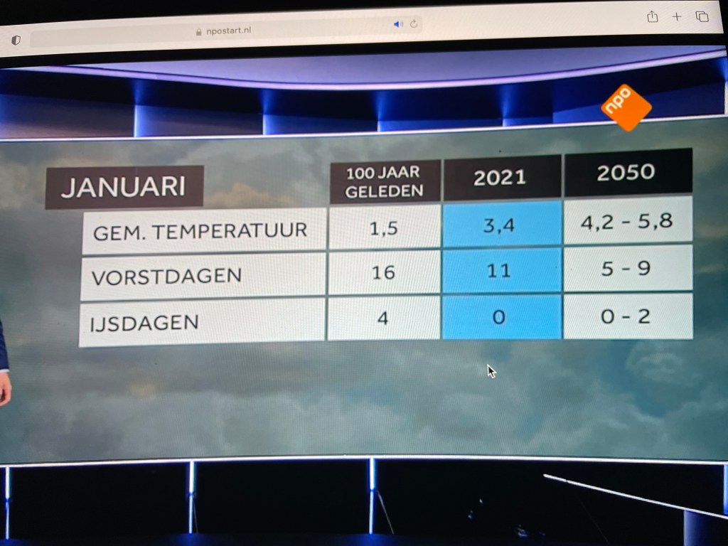 1 februari was zo’n dag waarin de verschillende media die ik bezocht wel iets over het klimaat ten beste gaven. In het NOS-journaal, ja toch de moeite waard om een beetje bij te houden, werd als afsluiting een overzicht gegeven van de maand januari. Lijkt me onmiskenbaar dat je moet constateren dat de verandering serieus is ingezet.